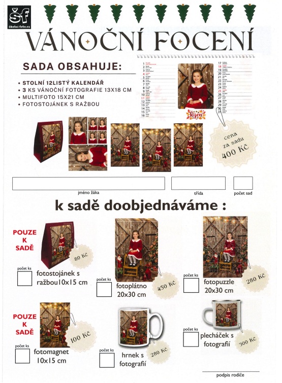 V pondělí dne 10. 11. proběhne tradiční vánoční focení v budově dolního stupně.
